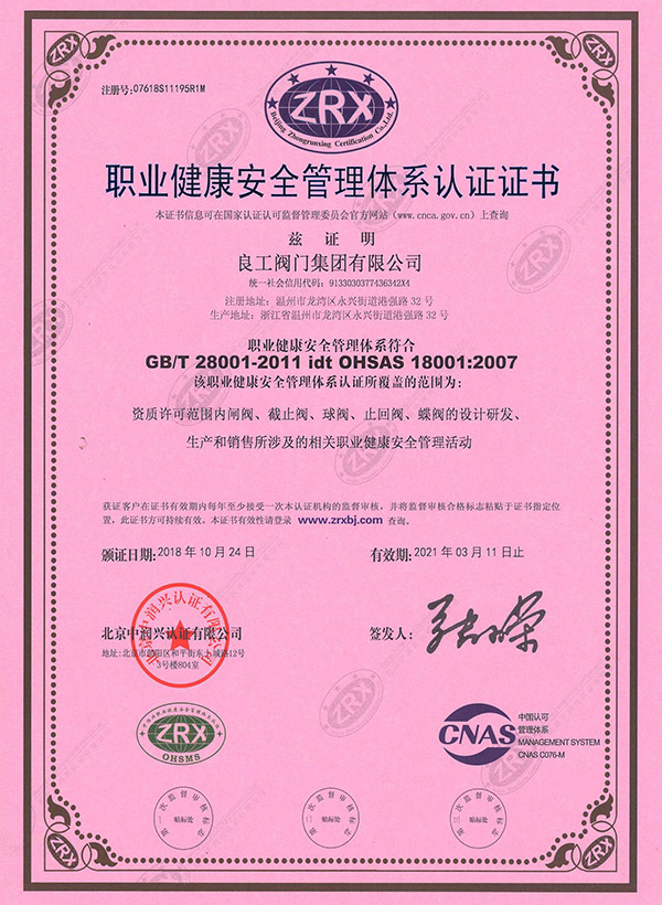 Occupational health and safety management system certification